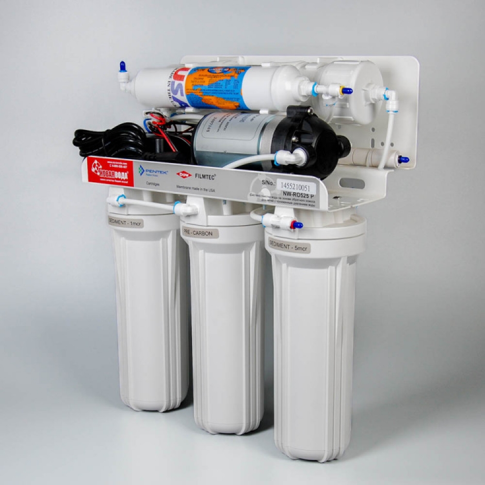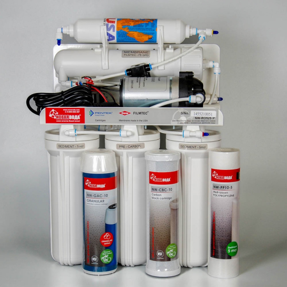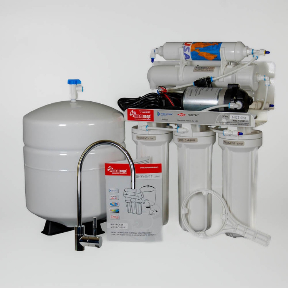 Фільтр зворотного осмосу Новая Вода NW-RO525Р Smart є стандартною 5-ти ступінчастою системою зворотного осмосу оснащенною насосом. Головною відмінністю від конкурентів є спеціальний кран для чистої води оснащений LED- індикатором ресурсу картриджів.
